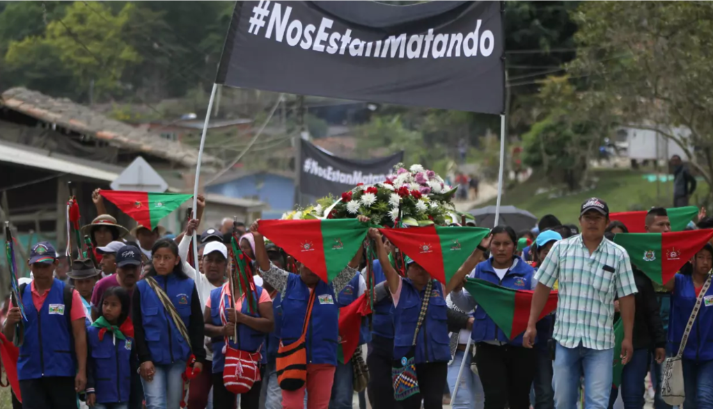 Otro ejemplo es, la Minga de Resistencia Social y Comunitaria de 2008, la movilización más gigantesca que salió desde el Kauka y terminó en Bogotá, capital del país. Ésta dejó en evidencia la credibilidad de la convocatoria y la gran capacidad de articulación del movimiento indígena. Esto fue un desafío abierto al régimen en rechazo a las políticas de guerra y de despojo, a la vez, una invitación seria a tejer una agenda propia con los procesos sociales. Por esta osadía, se nos vinieron varias formas de cooptación y captura (Almendra, 2017)[i], para frenar las luchas por la vida y someternos al control narco-capitalista que no ha parado de sembrar muerte.