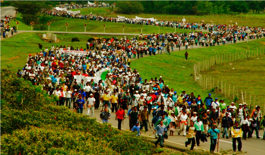 La etapa de la resistencia, liderada por la Cacica Gaitana en el Siglo XVI con la lucha armada (Conquista Española), por Juan Tama y Manuel de Quilos –Ciclos en el Siglo XVII a través de la negociación (Colonia Española) y por Manuel Quintín Lame en los Siglos XIX y XX con el despertar de la consciencia y las acciones de hecho (en el Periodo Republicano). La etapa de recuperación reconocida por las tomas de tierras lideradas entre indígenas y campesinos con el lema “Tierra para la gente” y el nacimiento del Consejo Regional Indígena del Cauca-CRIC el 24 de febrero de 1971, logrando una de las reformas agrarias más reconocidas en América Latina. La etapa de la autonomía, motivada por el Padre Álvaro Ulcué Chocué, con el lema “gente para la tierra”, desde Toribío Cauca en la década de los 80, con la consolidación de la asamblea comunitaria, la creación de los Planes de Vida y la instalación de diversos espacios de formación. La etapa de la alternativa, sembrada desde el Congreso Indígena y Popular realizado en el 2004, cuando caminamos hacia Cali, llamando a la unidad de los pueblos para rechazar la agresión sistemática a través del TLC con EEUU y para reclamar el respeto a la vida.